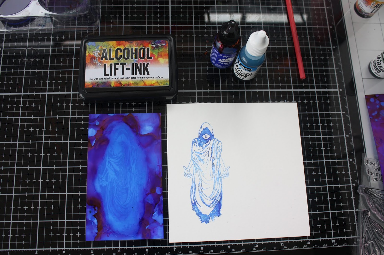 Today I am sharing two projects using the fab new Guardian Angel stamp set. I've recently bought an Alcohol Ink Lift pad so wanted to try it out with the angel to see if I could create a ghostly effect.